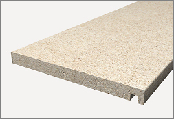 Soleira para remate de porta de entrada ou varanda de mármore Rosa Aurora, até 110 cm de comprimento, até 20 cm de largura e 2 cm de espessura, com pingadeira, face e bordo recto polidos, segundo NP EN 771-6. |