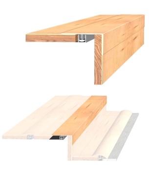 Perfil de MDF recoberto, para junta de escada (para degraus em geral). |