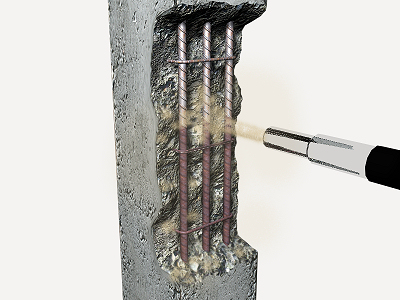 Preparação de superfície de armaduras em elementos de betão armado. |