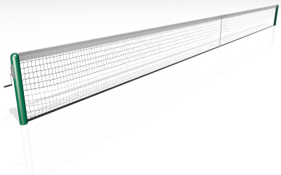Equipamento desportivo para campo de ténis, composto de rede de nylon reforçado, postes de apoio e acessórios regulamentares, segundo norma federativa.