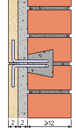 Revestimento interior, sem caixa de ar, com placas de pedra natural, "sistema tradicional". |