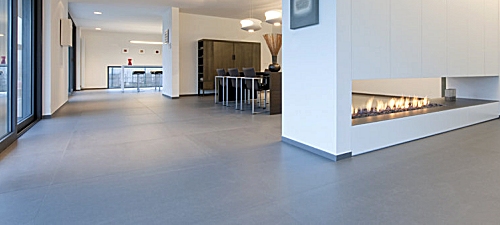 Pavimento interior com ladrilhos cerâmicos de grés porcelânico de grande formato reforçado com fibra de vidro, Lámina Porcelánica Reforzada Techlam® "LEVANTINA", de 3000x1000 mm e 3 mm de espessura, série Basic, modelo Antracita, acabamento anti-deslizante, para utilização pedonal privado, assentes com cimento cola melhorado, C2 cinzento, e enchimento entre juntas com argamassa de juntas cimentosa com resistência elevada à abrasão e absorção de água reduzida, CG2, para junta mínima (entre 1,5 e 3 mm), com a mesma tonalidade das peças. |