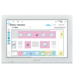 Controlo de sistema, para 50 grupos ou 50 unidades interiores de ar condicionado (400 grupos com módulos de expansão), modelo AE-C400E "MITSUBISHI ELECTRIC", de 306x211x71,8 mm, com ecrã táctil LCD de 11,1", servidor web, serviço de controlo e monitorização da instalação remotamente MELCloud Commercial e ligável ao bus MNet. | ||
