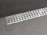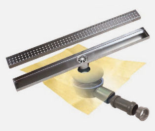 Kit Lineal Basic Squares 50 "REVESTECH", formado por lâmina impermeabilizante flexível tipo EVAC Dry40 de 250x250 mm, com união termoselada ao sumidouro sifonado de PVC de 60 mm de altura, saída horizontal de 40 mm de diâmetro, com grelha para encastrar de aço inoxidável, modelo Cuadros de 498x57 mm, calha de drenagem de aço inoxidável, de 500x61 mm e lâmina impermeabilizante flexível tipo EVAC Dry40 de 1500x2000 mm composta por uma folha dupla de poliolefina termoplástica com acetato de vinil etileno, com ambas as faces revestidas de fibras de poliéster não tecidas, de 0,48 mm de espessura e 290 g/m², segundo EN 13956, para impermeabilização e drenagem de chuveiro executado "in situ".