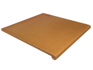 Revestimento de degrau de escada exterior, com peças de grés rústico, formado por cobertor com canto arredondado, e espelho, gama média, capacidade de absorção de água E<3%, grupo AI, segundo NP EN 14411, com resistência ao deslizamento maior que 45 segundo ENV 12633. COLOCAÇÃO: em camada fina e através de colagem simples com cimento cola melhorado, C2 TE, segundo NP EN 12004, com deslizamento reduzido e tempo de colocação ampliado. ENCHIMENTO DE JUNTAS: com argamassa de juntas cimentosa melhorada, com absorção de água reduzida e resistência elevada à abrasão tipo CG 2 W A, cor branco, em juntas de 2 mm de espessura. | ||
