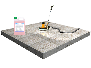 Líquido cristalizador, de cor branca, com pH de 2,5, para tratamento superficial de cristalização e abrilhantamento, em pavimentos de pedra natural ou de marmorite.