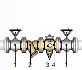 Válvula limitadora de pressão de latão, de 1/2" DN 15 mm de diâmetro, pressão máxima de entrada de 15 bar e pressão de saída regulável entre 1 e 4 bar, com duas válvulas de seccionamento adufa de latão fundido e filtro de retenção de resíduos de latão. Inclusive manómetro, elementos de montagem e acessórios necessários para o seu correcto funcionamento.