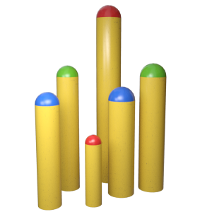 Poste de demarcação circular, de compósito, de 70 mm de diâmetro e de 266 mm de comprimento, de cor amarelo, para delimitação de espaços e protecção dos diferentes elementos localizados no cais de carga e descarga face a choques de veículos.